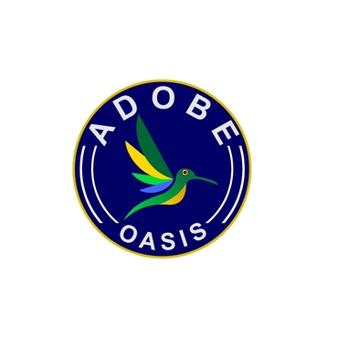 The text “Adobe Oasis” should be integrated into the logo in a natural way. The text should have a relationship with the logo itself, not be an afterthought tacked onto the logo.