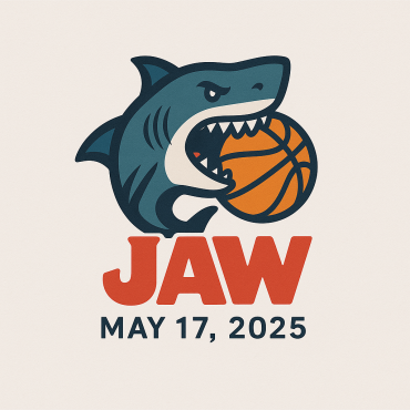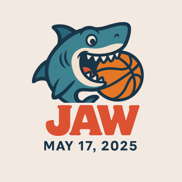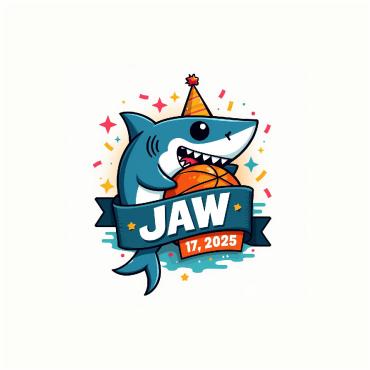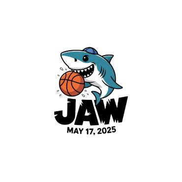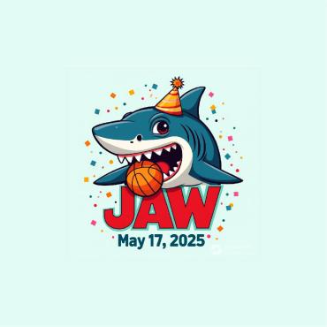 A Jaws shark biting into a basketball