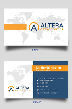 The back of the card should have "Altera Orthodontics" along with the logo on the left side. The right side of should be my name "Dr. Hamid Hashemi, D.M.D., M.S., M.B.A.", Orthodontist, along with phone/fax/email/website.