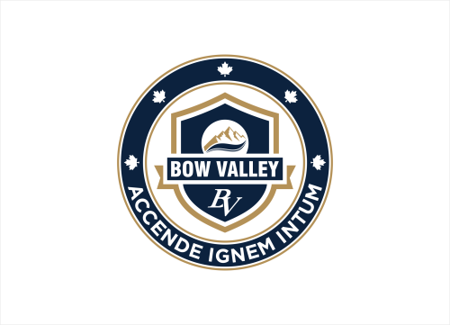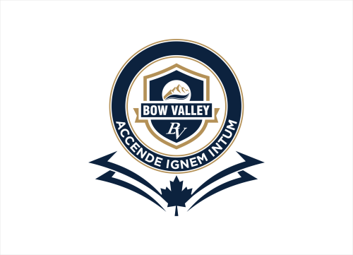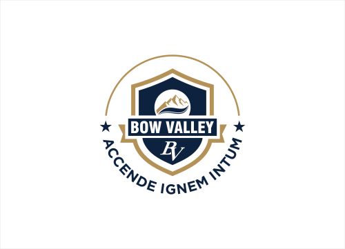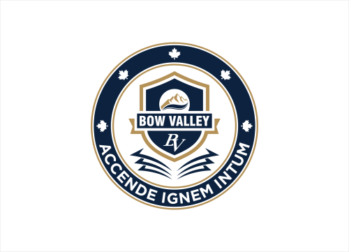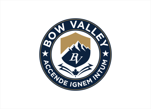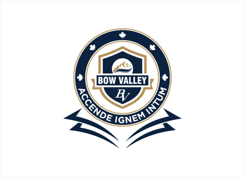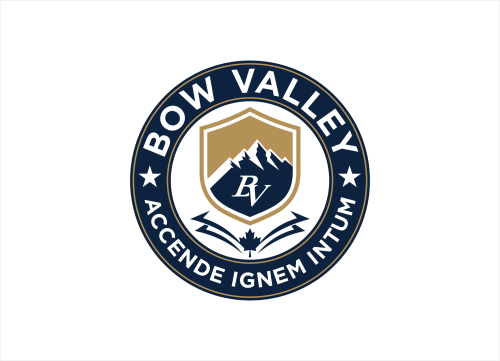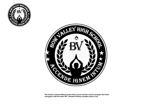 This school in Cochrane Alberta Canada needs a school seal and a school monogram. The School monogram is with the Letters "BV" . elements of Rocky mountains, forest or river.