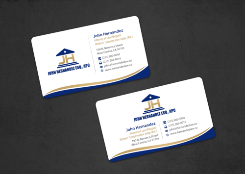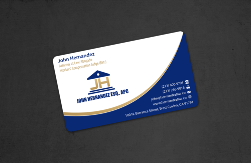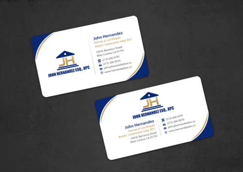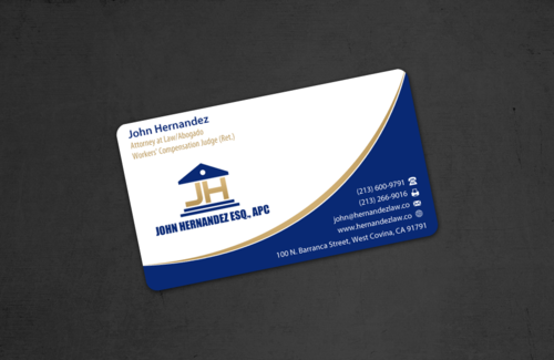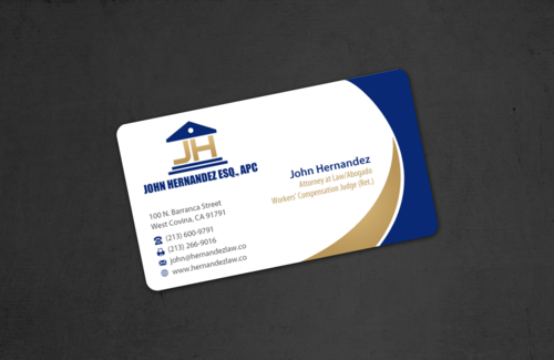 NAME/TITLE SHOULD APPEAR AS FOLLOWS: John Hernandez Attorney at Law/Abogado Workers' Compensation Judge (Ret.) It should also have my corporate name somewhere: John Hernandez, Esq., APC
