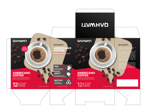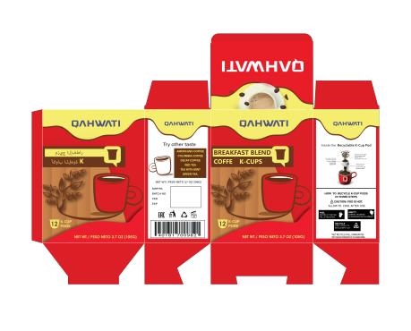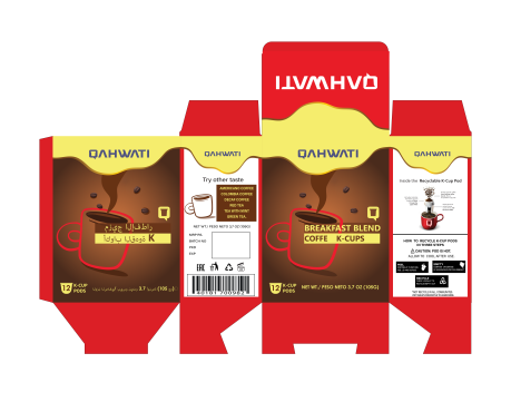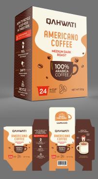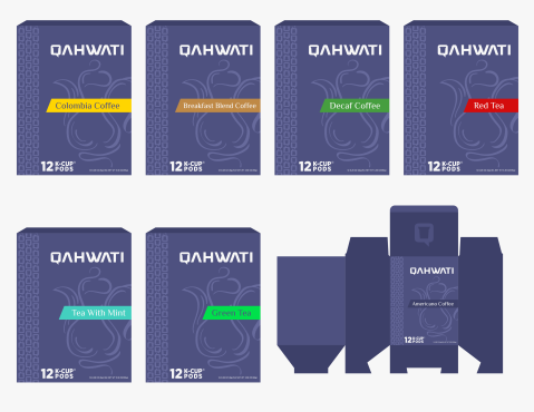 We want to design a retail box for our K-cups coffee pods. We need it to be catchy and give you a feeling that it is delicious! A lot off brands on the shelf so we need to appear professionally. We also prefer the simple designs but please use your full imagination. Our logo color is purple but you don't have to use it in the box. We sell the following k-cup pods now: Americano Coffee - Colombia Coffee - Breakfast Blend Coffe - Decaf Coffee - Red Tea - Tea With mint - Green Tea. We want to use colors to differentiate between each kind. We will attach some samples from the famous brands to get some ideas and you can yous your own ideas. We will attach our new logo. We want one face in English and the back face in arabic ( if you don't speak Arabic please just leave the back empty). Thank you.