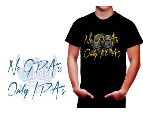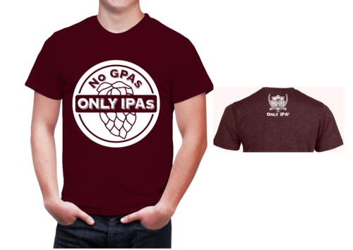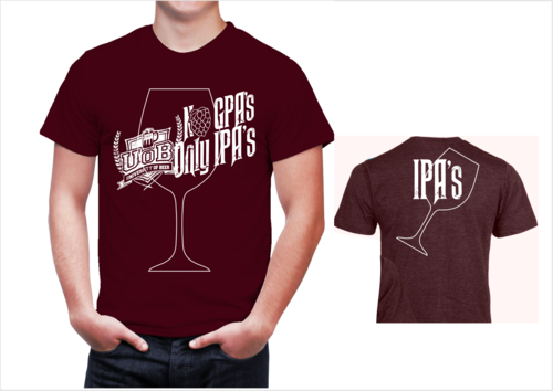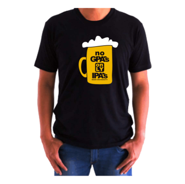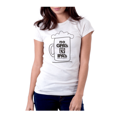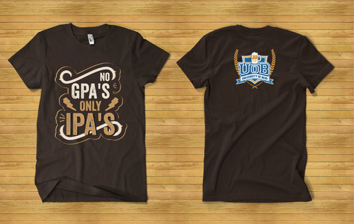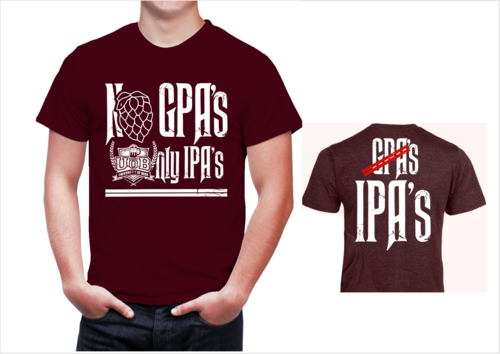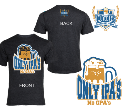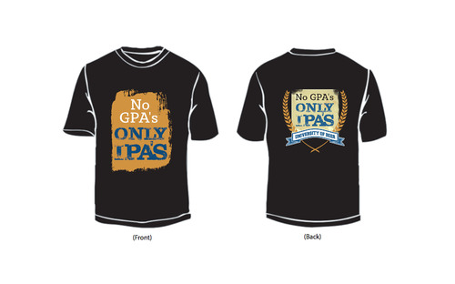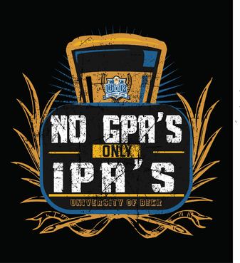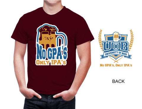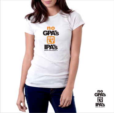 The shirt will be for a beer bar. We have a younger hip/cool customers. Our bar is called "University of Beer" focusing on craft beers. "No GPA's, Only IPA's" will be the tag line for this shirt. It's a play on school theme and IPA beer.