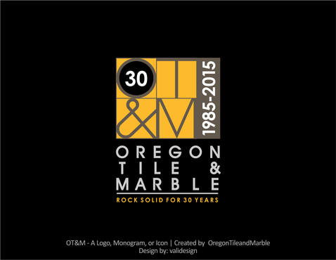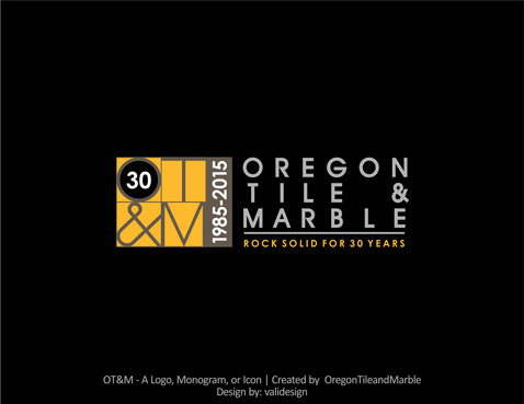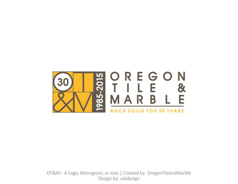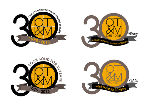We have a current logo, we are looking for a special 30th anniversary logo. We would like to incorporate "30" and "1985-2015" and possibly the tagline "Rock Solid for 30 Years" or "A Pacific Northwest Tradition for 30 Years". We are known as Oregon Tile & Marble and OTM. Our website is oregontileandmarble.com.