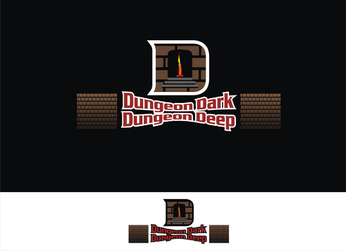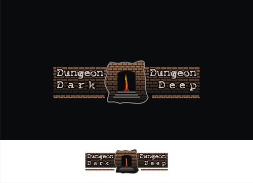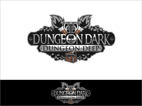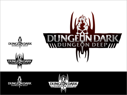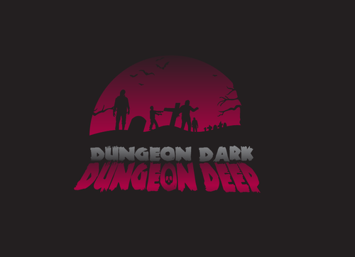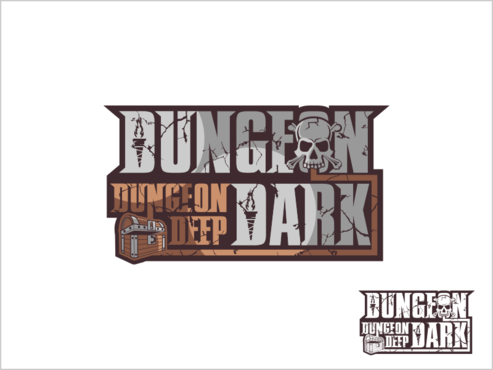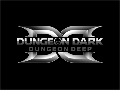 For ideas, perhaps rock carved letters, with a torch providing light onto the logo, and a skull on the ground at one end. Perhaps the O in each of the "Dungeon" words is represented by a skull.