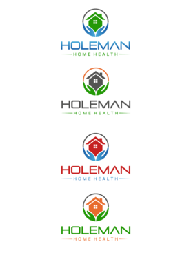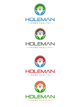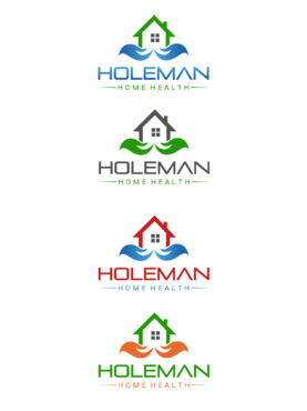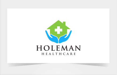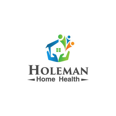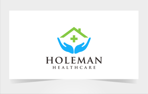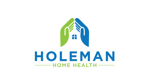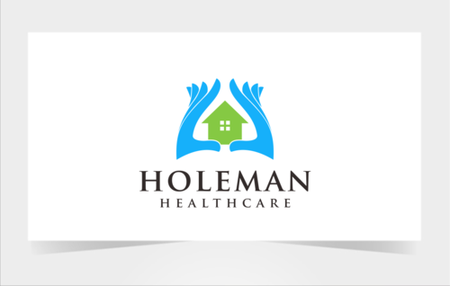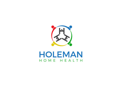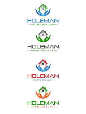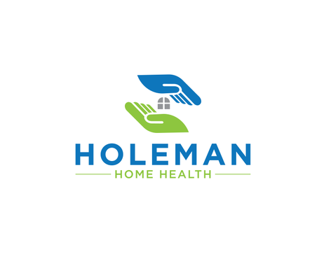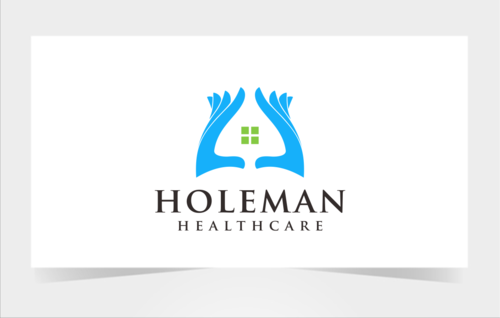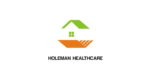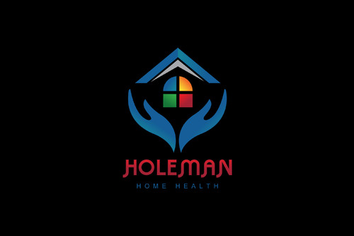 Open hands, with a house inside of hands, and the name Holeman Healthcare under hands. Provide some colors, to represent different types of people.