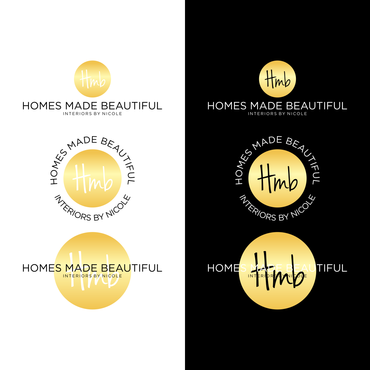 Want to see something with the initials HMB but also the text "homes made beautiful". Really want it to look elegant and clean. Some element of shimmer/gold reflections would be really nice.