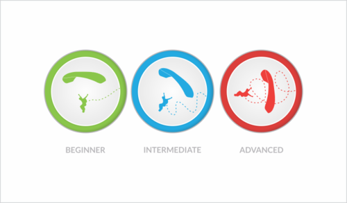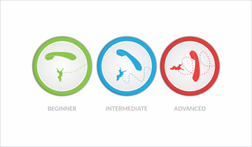 These icons are for a website that will be the portal for a parachute (canopy) piloting school franchise (like a skydiving school but focused on the part which consist in piloting the parachute rather than the freefall part of the jump). This website purpose is to present the school network, the instructors and the different types of course that are offered. It will also be a booking platform for those courses.