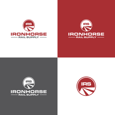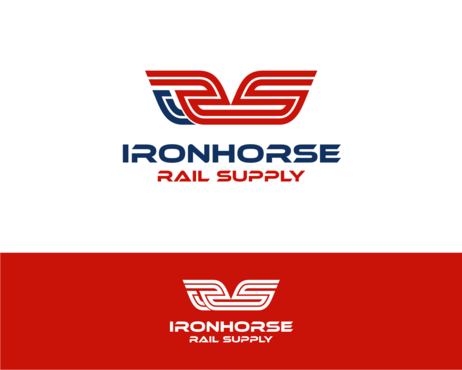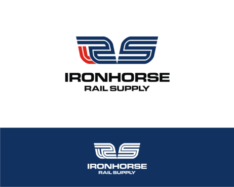 modern minimalist logo in red, white and blue for Ironhorse Rail Supply. Please submit with different shades of the requested colors.