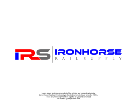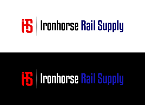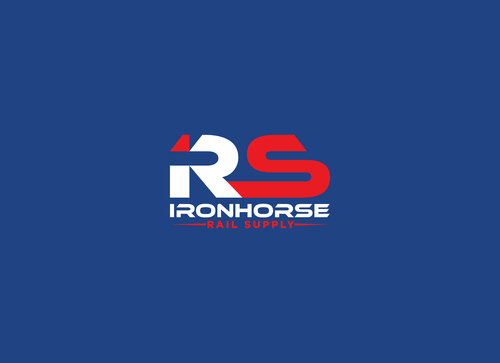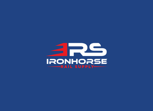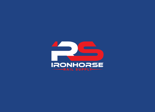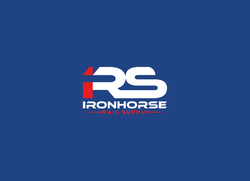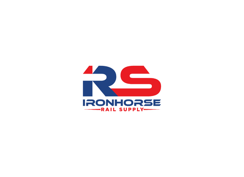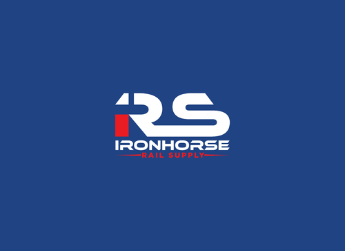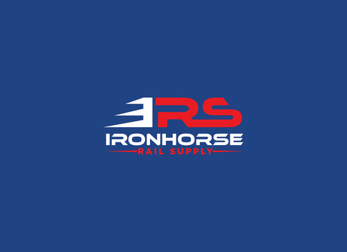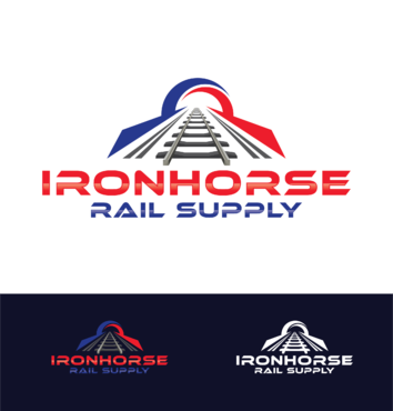 modern minimalist logo in red, white and blue for Ironhorse Rail Supply. Please submit with different shades of the requested colors.