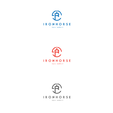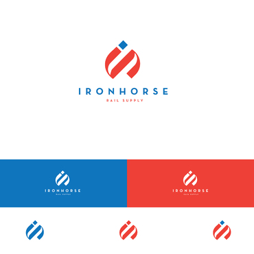 modern minimalist logo in red, white and blue for Ironhorse Rail Supply. Please submit with different shades of the requested colors.