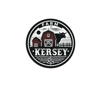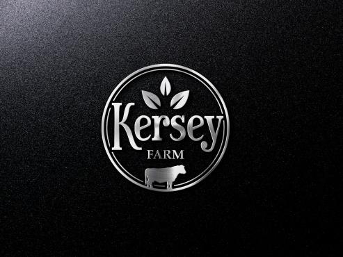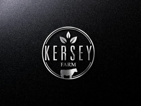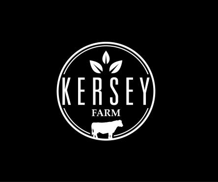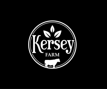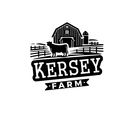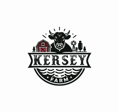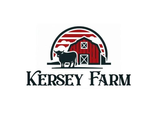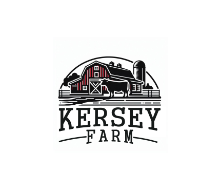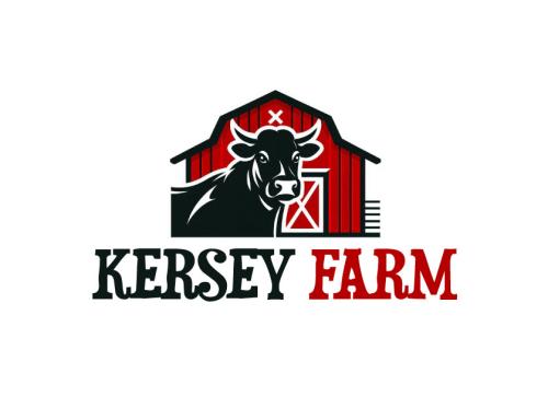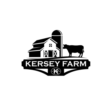 We'd like a very simple, authentic agriculture feeling for a farm logo done in black ink which includes any of the below: a black angus cow (not bull), a barn (think red barn with red trim and cross hatched sliding door), livewater (think river and slough), and/or silo. The design will be used for a steel sign to be laser cut so it shouldn't be too detailed. The name of the farm to be used in the logo is, 'Kersey Farm' and we'd like that horizontally placed in the logo. Located in Colorado.