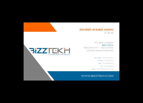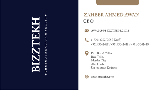 The above details are given for desiging purpose. Company Name is Bizz tekh Primiparily into desigining E Commerce platform for new startups web and App developmebt
