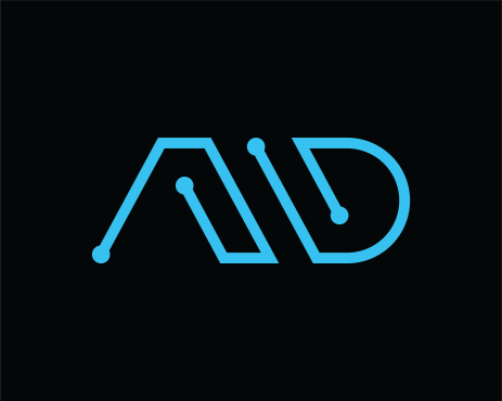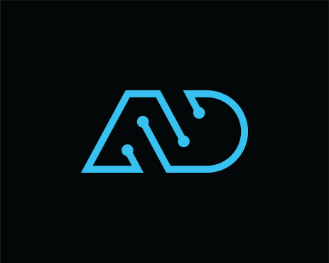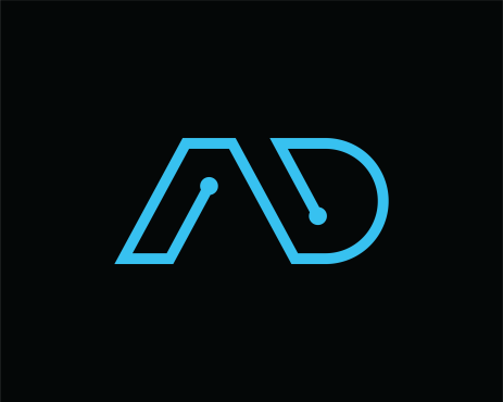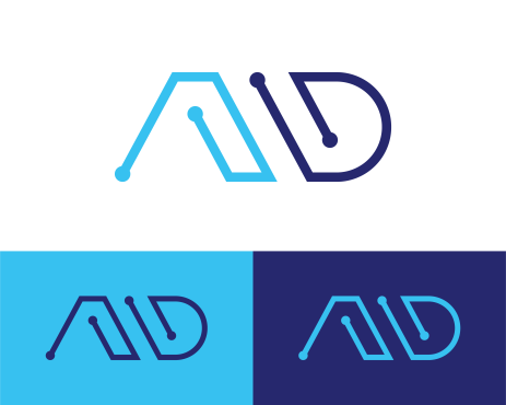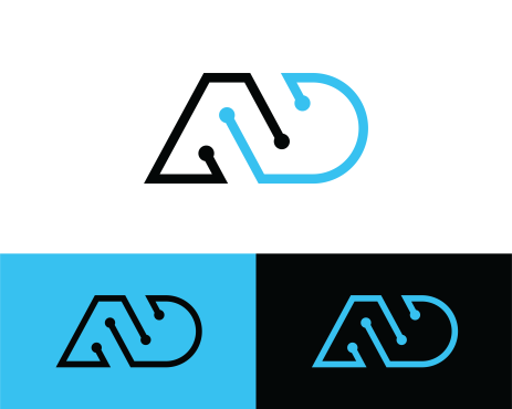Logo design for an IT Services company named ALPHA DIGITAL to be one letter or two letter max ("A" "a" "D" "d"). also color are Black or/and blue. all colors must be CMYK.