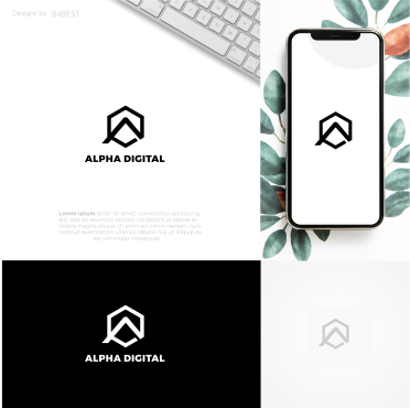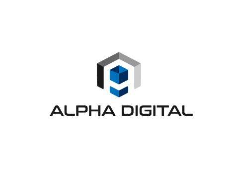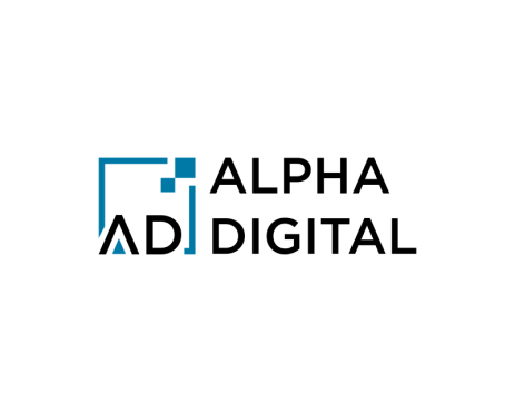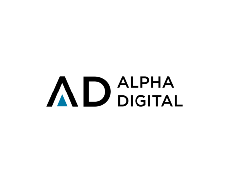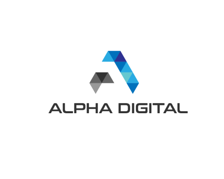 Logo design for an IT Services company named ALPHA DIGITAL to be one letter or two letter max ("A" "a" "D" "d"). also color are Black or/and blue. all colors must be CMYK.
