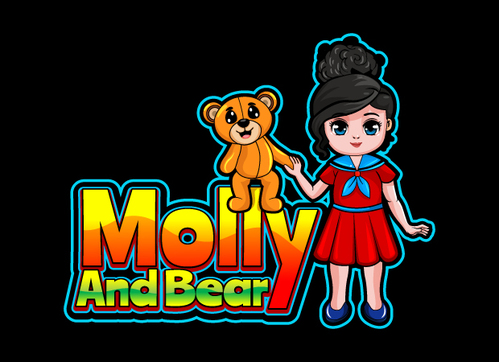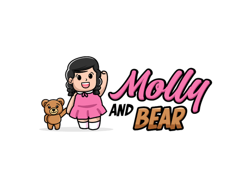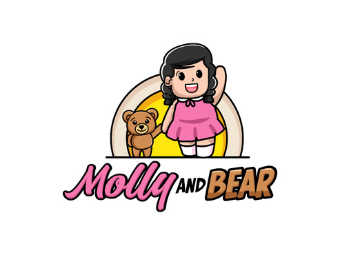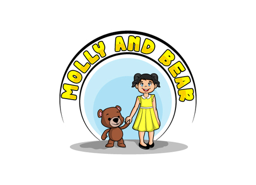 I want the logo to be illustrative and to have an Illustration of a young girl in a dress ( around 5 years old ) and a Bear - Like a teddy bear - Possibly holding hands - I want a very illustrative logo - the name is Molly and Bear or Molly & Bear -