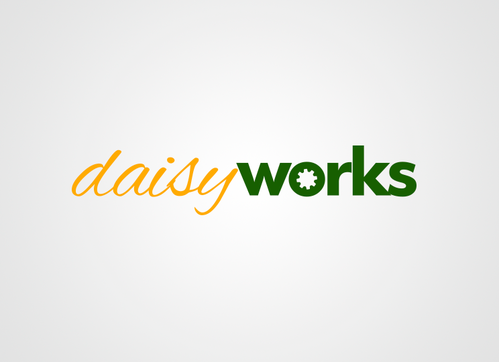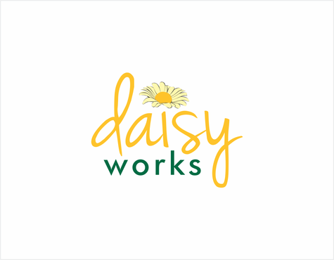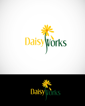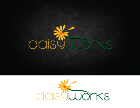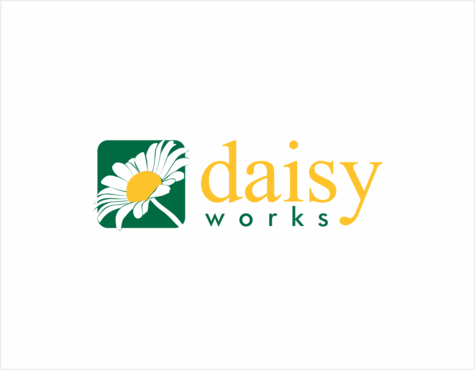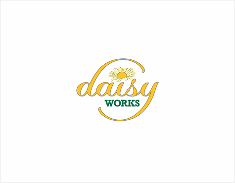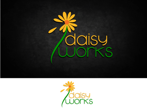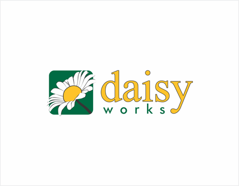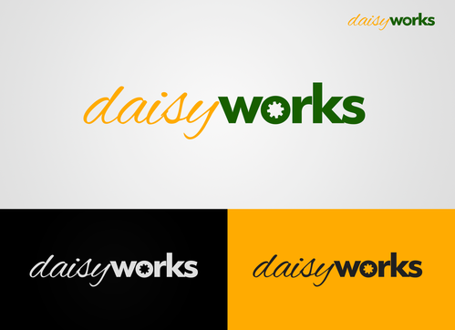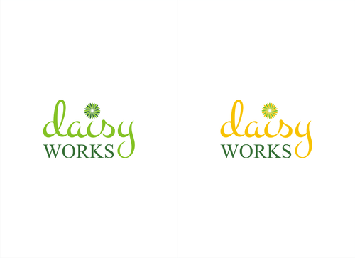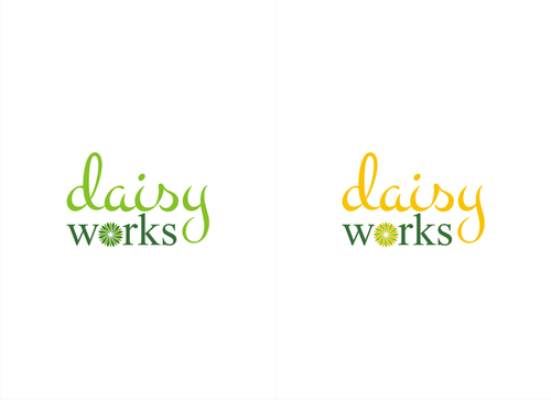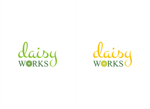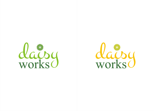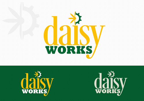 For now, I am thinking lower case "daisy" in Times New Roman in yellow (perhaps with thin black outline) in larger font above lowercase "works" in green in Futura Md BT in smaller font. The words should be close together vertically