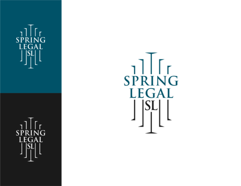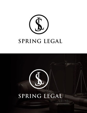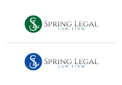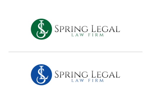 I want "Spring Legal" written in color - perhaps blending with black and/or grey. Color should be green, blue, or red. Also I want the letters S and L intertwined or together in a circle, or square, or triangle. I don't want any cartoons or anything cartoonish. It should be professional, traditional, and sophisticated.