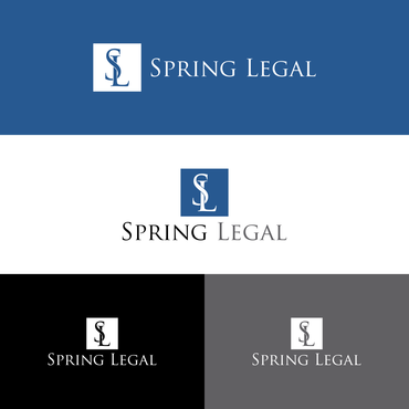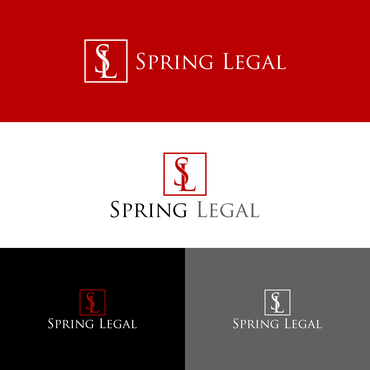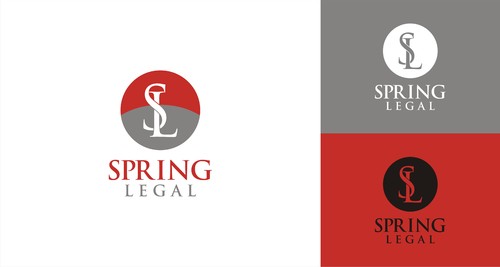 I want "Spring Legal" written in color - perhaps blending with black and/or grey. Color should be green, blue, or red. Also I want the letters S and L intertwined or together in a circle, or square, or triangle. I don't want any cartoons or anything cartoonish. It should be professional, traditional, and sophisticated.