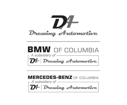 Mercedes-Benz of Columbia, with something including Drewing auto or Drewing Automotive underneath it, BMW of Columbia with something including Drewing auto or Drewing Automotive underneath it. and the same logo using both brands with the same thing underneath it