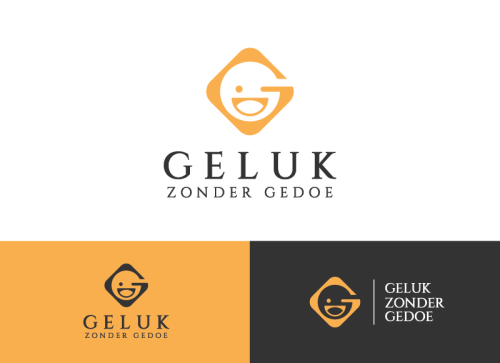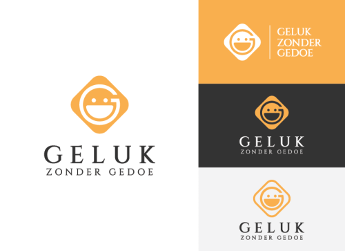 My logo needs to evoke happiness. I am an optimistic person and I want to convey that. My coaching business is for people who have trouble saying 'no' and as a result, risk losing control over their lives. The name of my coaching business is "Geluk Zonder Gedoe," which literally means that you can be happy without too much hassle. Therefore, I want the logo to reflect happiness, positive energy, and accessibility. My old logo was a smiley, and I would like to keep the smiley because it represents happiness and cheerfulness for me, but I want it to look more professional. I find the current one too amateurish. I also want the name 'Geluk Zonder Gedoe' included. I want the color tones of orange with the color code: #f9af4d in it, along with a white background and black letters for the name. Other shades of orange/yellow can also be included. But the overall look should be cheerful, professional, accessible, serious (because it is about serious coaching), and playful.