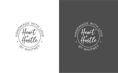 I'm leaning toward a round logo. In my head I see the Heart & Hustle in the middle of the circle with the "Handmade with love" text and By Whitney (or whatever sounds not so basic, lol) around it. I love black and white, I love stripes, skulls, abstract designs and script or typewriter fonts. Again, open to all kinds of options. Thanks so much!