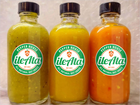 We will upload our current logo, we like the current color scheme, please match those colors. We want a logo that stands out on a crowded shelf of other hot sauces. The name of the company is "Ile Ata", and the English translation is "Pepper House". We would like both phrases on the logo so that it is apparent that Pepper Hoise is the English translation. We would also like the words "All Natural Hot Sauce" to appear in the logo. Also, the "i" and the "l" of Ile should be distinct so you can tell the letters apart. A habanero pepper somewhere in the logo would be ok, but not necessarily required. We want a clean logo, not too busy.