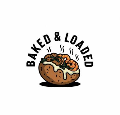 this logo needs to represent an appetizing loaded baked potato that features shrimp, chicken, or steak. and needs to look hot and fresh