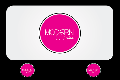 We have Envisioned MODERN capitalized in a bold modern font with miss in a feminine cursive font overlapping modern in the bottom right hand side but we are very open to new designs.
