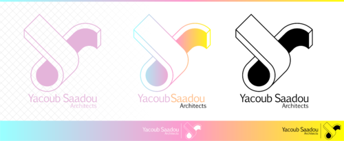 FOCUS ON NAME .(Yacoub Saadou Architects ) with light touches or >>>.CAN USE ARCHITECTURAL ITEMS(BUILDINGS .SHADOW .WINDOWS,,,) or (Auto-CAD icons )