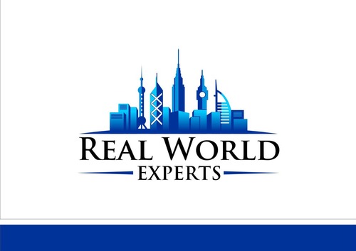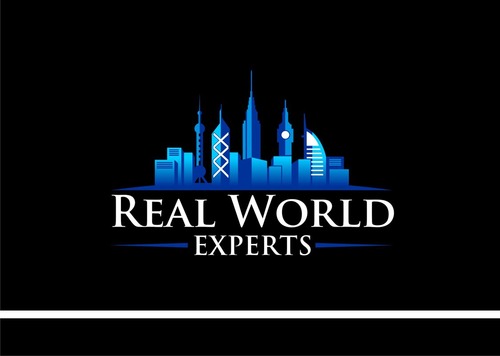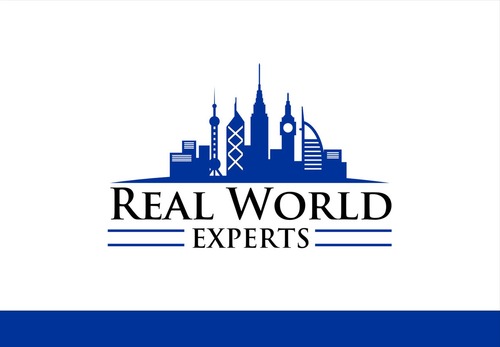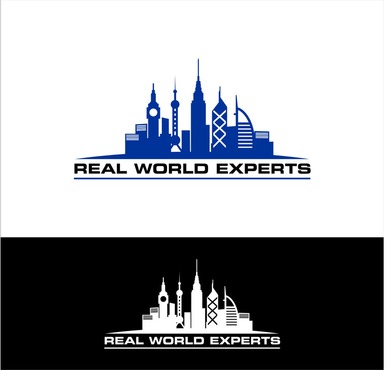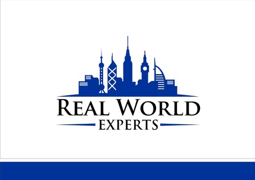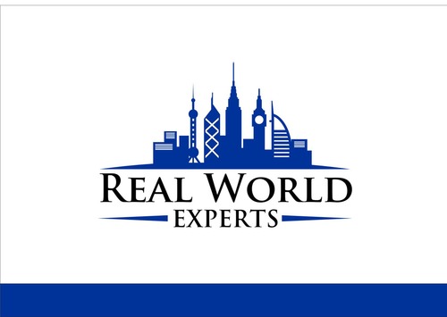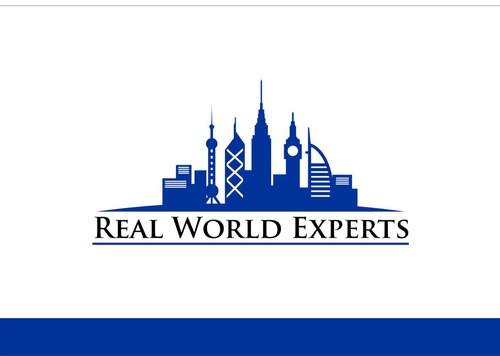 Logo should include the image of skyline of famous global buildings including: Empire State Building (NYC), Big Ben (UK), Oriental Pearl Power (Shanghai), Bank of China building (HK) and Burj Al Arab a.k.a. Sail Hotel (Dubai). The skyline should be on top of a wide tapered (on both ends) arc to simulate the horizon of the Earth. The company name, Real World Experts, would be located underneath the image. Image should be about the same width as the company name.
