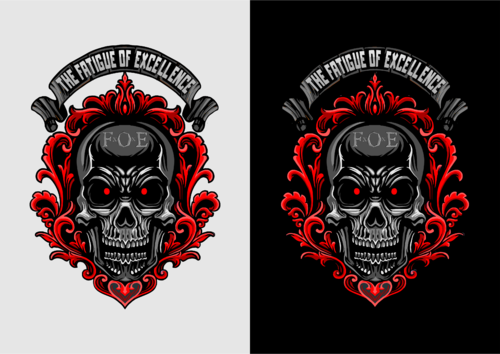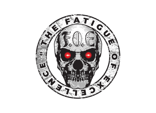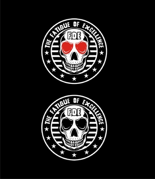 What we have in mind is rather simple. We are picturing a skull (as detailed as possible) with the letters "F.O.E" on the forehead that look like they were carved into the bone. We would also like to use a small "x" instead of the periods in "F.O.E." again so that it looks carved into the skull as if with a knife or something. We would also at least like to consider glowing red eyes in the skull.