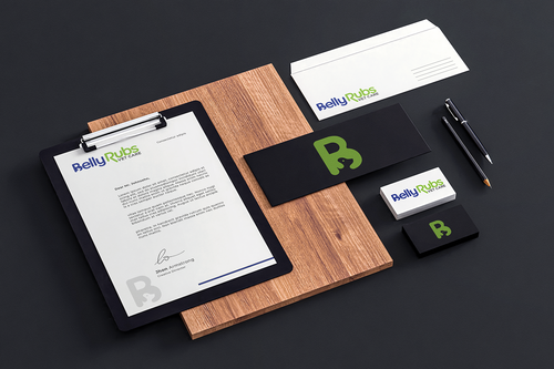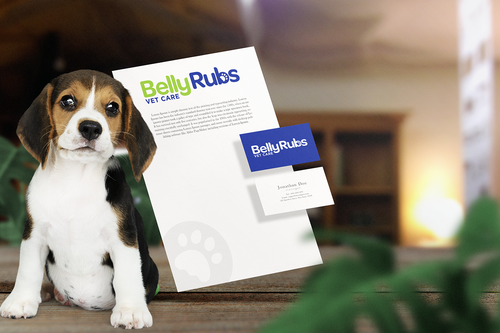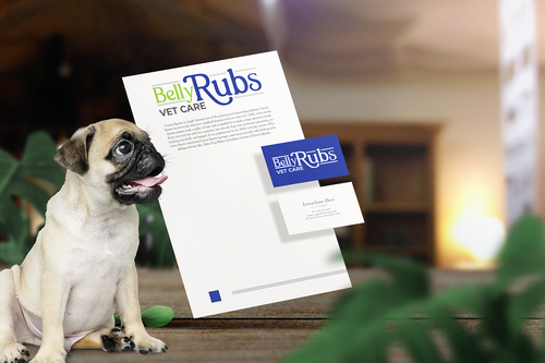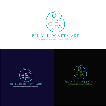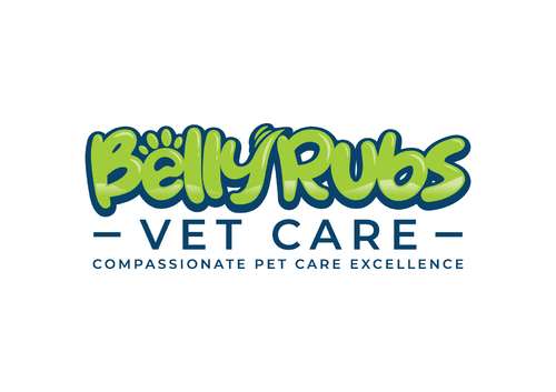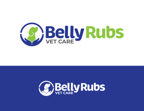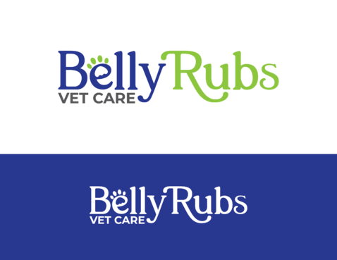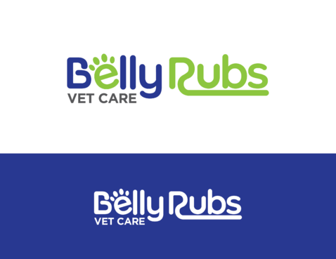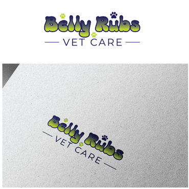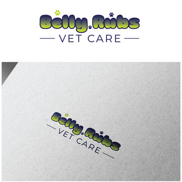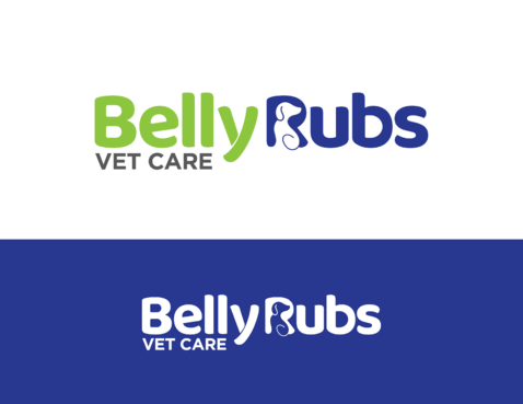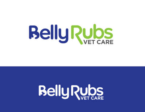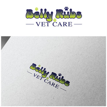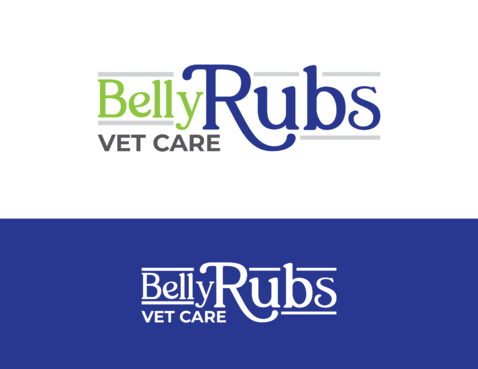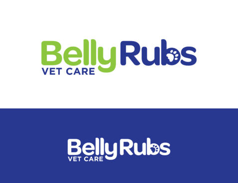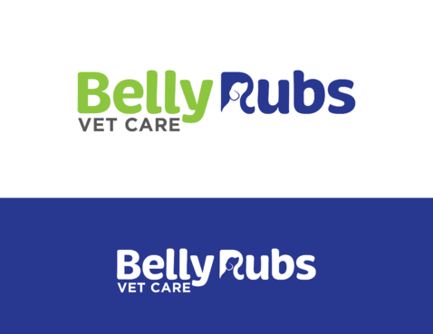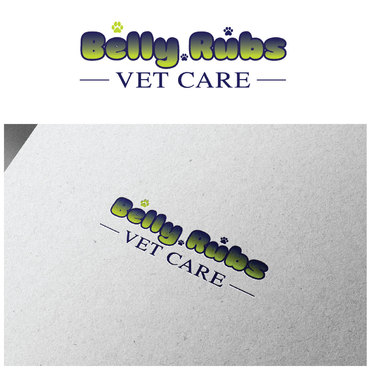 I'd like the logo to include these 3 colors: Navy blue, Lime green, White. I'd like to see the "Belly Rubs" wording be more fun, happy, bubbly, friendly and then below it the words "Vet Care" be more professional, less cute, showing confidence and capable of handling serious medical issues.