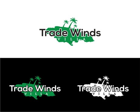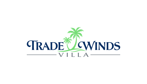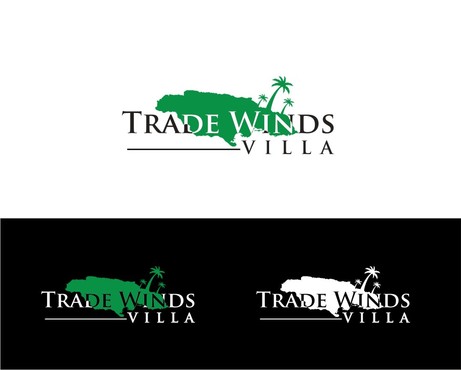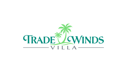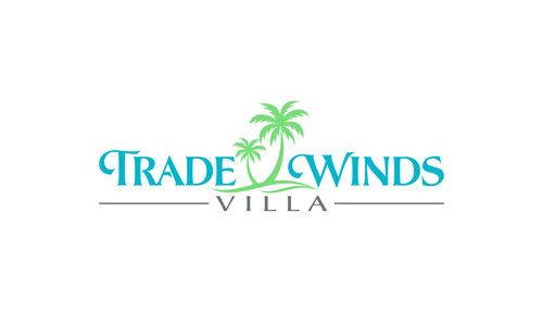 This is a logo for a vacation villa in Jamaica. The colour pallet are pastel Green, Yellow and Blue.