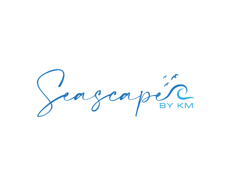 The word Seascape with maybe waves on the S or the e. I want Seascape to be the main graphic and by KM to be small and perhaps underneath the word Seascape. This logo will be used for social media but also for garment tags and jewelry packaging.