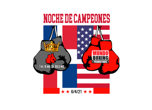 The logo for a boxing fight night to take place in the Dominican Republic on 6/4/21 promoted by The King of Boxing and Mundo Boxing Promotions.