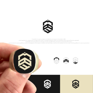 I would like the monogram to use the space on the ring effectively, and appear customized to the shape. I am interested in reviewing different styles of monograms and am open to modern and clean looks, as well as more stylized. Feel free to do something different to catch my attention!