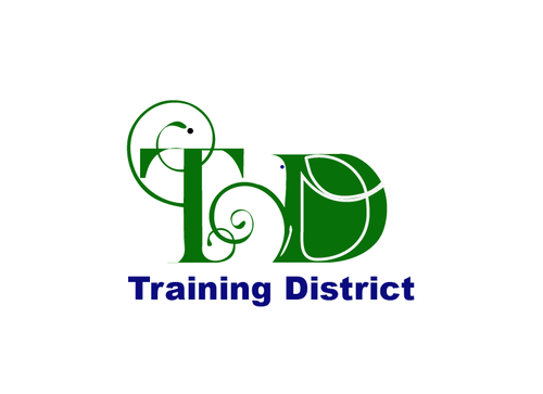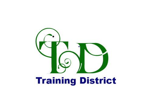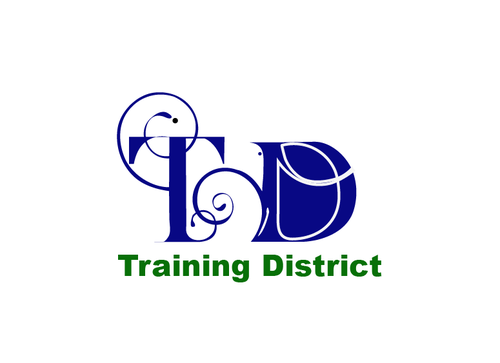 The logo should have the words "Training District" along with an initial symbol "TD" that is creative like the sun microsystems or LG above.