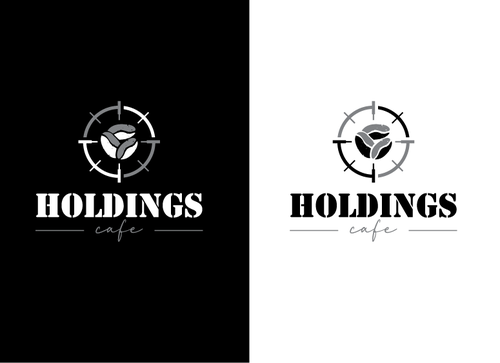 I would like to see the H be the highlighted part of the logo. Thinking maybe the H inside of a sight but make it not look like a sight just more of the circle? Or the H over the name Holdings Cafe.