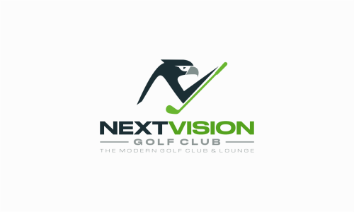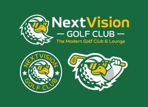 “NextVision Golf Club — Premium Modern Golf Simulator Logo + Bird Mascot Branding”