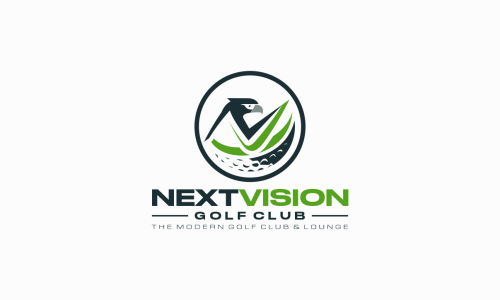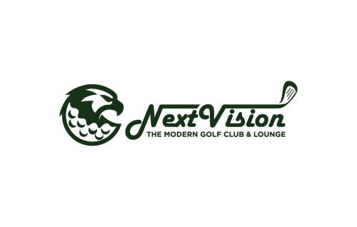“NextVision Golf Club” in a custom, sleek, modern typeface