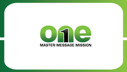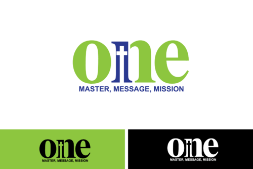 Using either the number or the word "One" with Master, Message, Mission stacked to the side. Ombre. The number in front with the tagline faded in the background.
