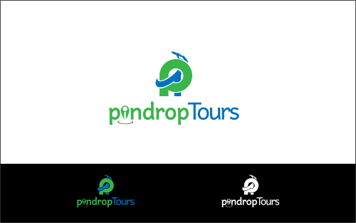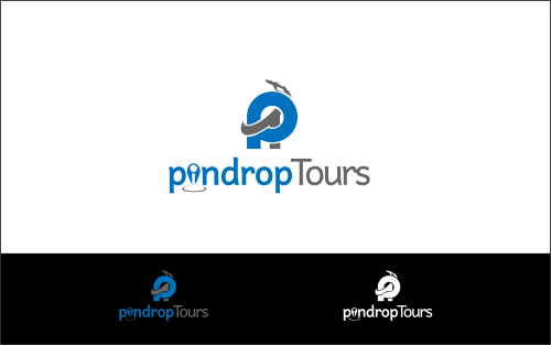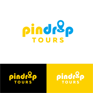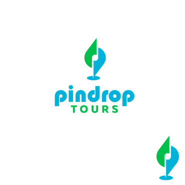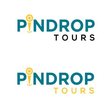 We'd like the pin icon to represent the "i" in pindrop company name. Tours should be a different font/color and to the bot\tom rigt of pindrop. FYR: the website domain is www.pindrop.tours