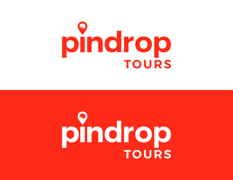 We'd like the pin icon to represent the "i" in pindrop company name. Tours should be a different font/color and to the bot\tom rigt of pindrop. FYR: the website domain is www.pindrop.tours