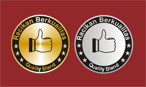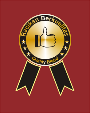 The logo needs to be designed as a quality stamp or icon with the words "Racikan Berkualitas" which means 'quality blend' in Indonesian. The logo is intended to be placed on a poster in the bottom right hand corner as a quality assurance seal. The poster has a dark red background so the logo needs to contrast against this and should be distinctive and unique. The use of metallic silver, grey, cobalt, white or black would be preferred but it does not need to be restricted to these colours. Also the use of a 'thumbs up' symbol could be incorporated into the design but this is not mandatory either.