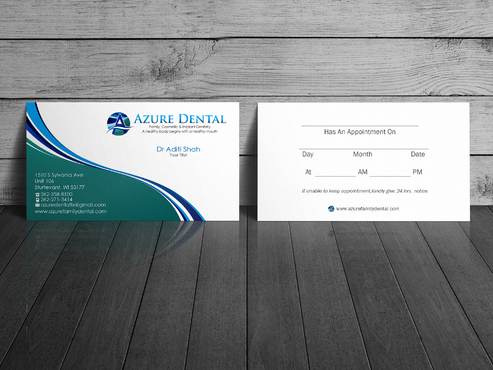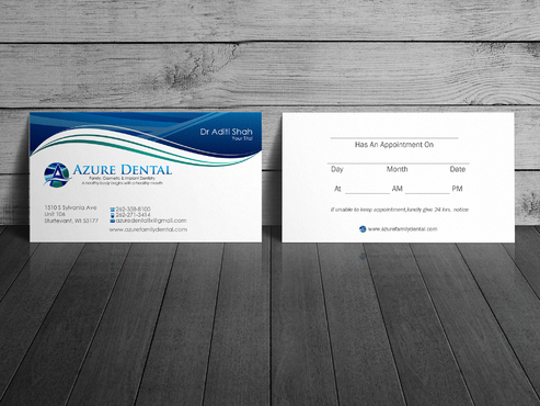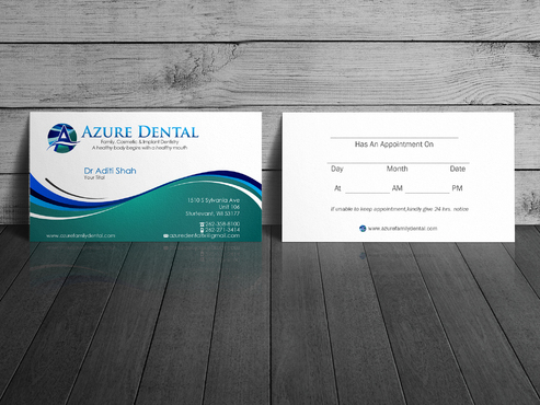 One version of the business card should have an appointment card layout on the back, which has section for day, date, time to be filled in. Another version: just logo, slogan and tagline on one side of the card and the other side having, doctor's name, address, phone number, website address, email address Again all these fields need to be easily edited in the final version.