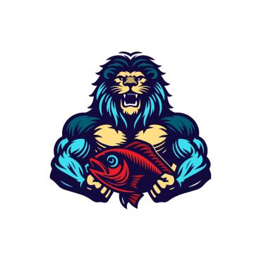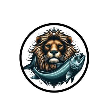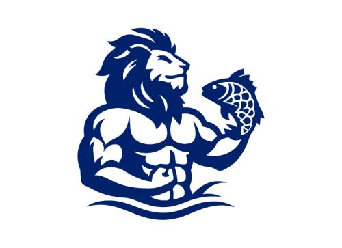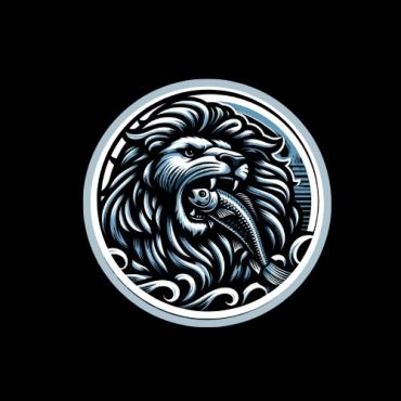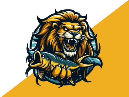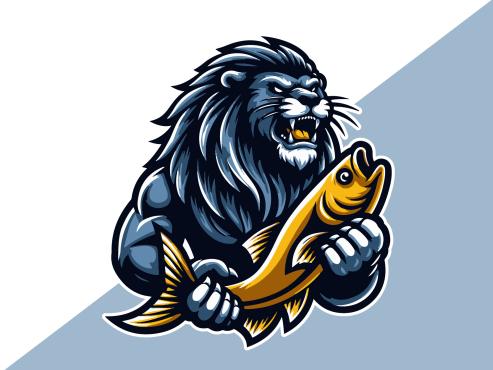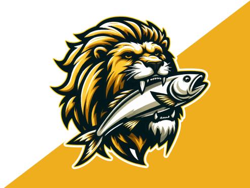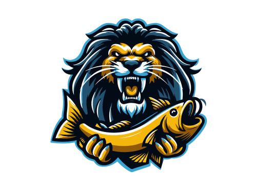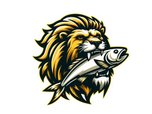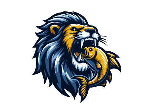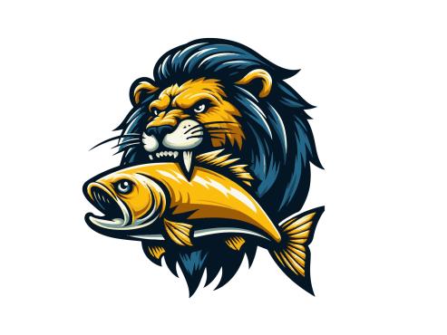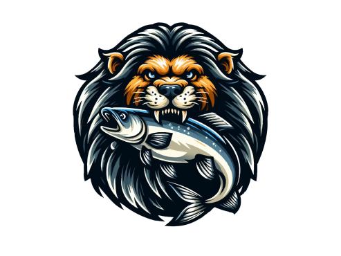 Dominant feature needs to be a large muscular SeaLion add a Lion Mane (like a real lion) around the head with a large fish in the Sea Lion mouth,