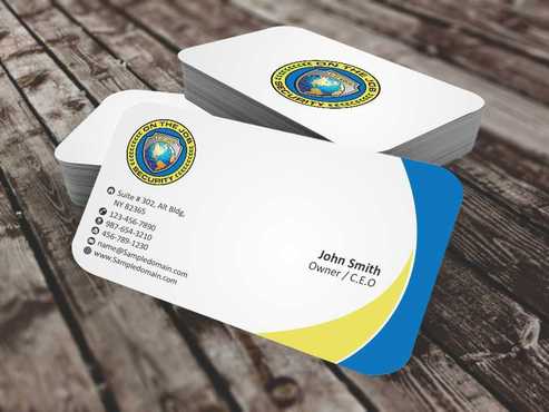 Please be creative. A suggestion would be to integrate our company's slogan, "Security at its finest" into the back of the card in some way. Thanks everyone!