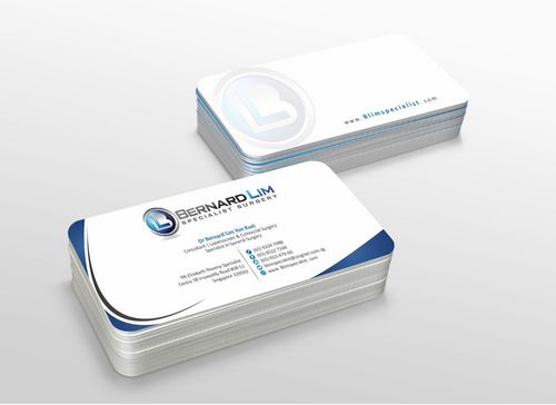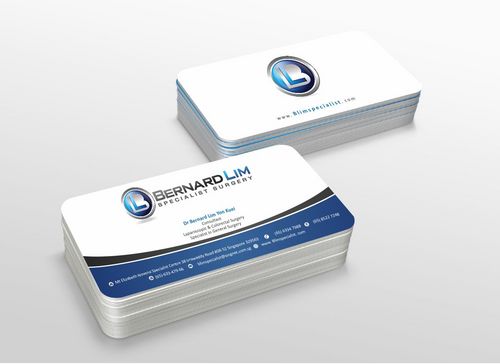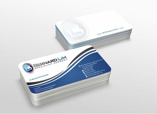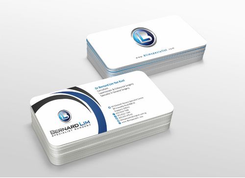 On my name card I would require the following: Dr Bernard Lim Yon Kuei Consultant Surgeon Specialist in General Surgery Laparoscopic & General Surgery MBBS(S'pore), FRCS(Edinburgh), MMED(Surgery), FAMS(Surgery) Stationary would include letter head, memo pad, envelope design.