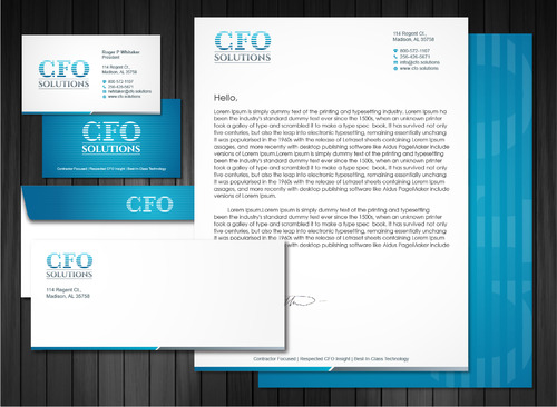 Do not use the above email address. Use the following email address on the business card: rwhitaker@cfo.solutions For stationery, use: info@cfo.solutions Tag line for stationery: Contractor Focused | Respected CFO Insight | Best-In-Class Technology